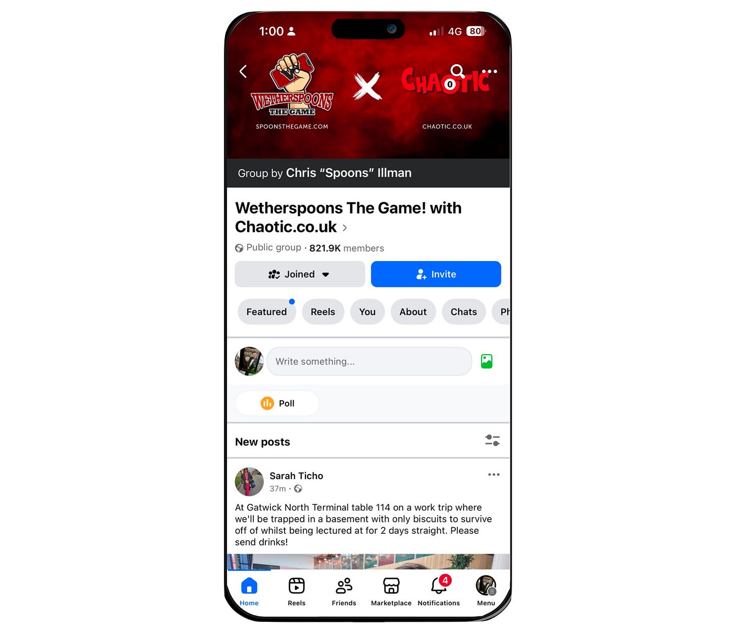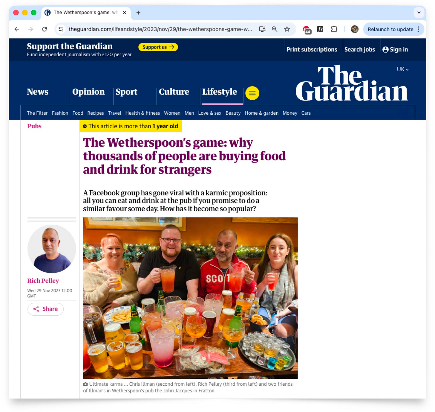 The game is housed in a facebook group of 821,000 people who buy food and drinks for strangers via the Weatherspoons app as a no strings attached act of kindness. It’s really that simple. People post a selfie on the group along with their table number, and those in the group open up the app and send them something from the menu. It’s a curious sort of kindness you wouldn’t believe happens were it not for the crazy success of it - an estimated £4,000,000 has been spent playing ‘the game’ since it began.